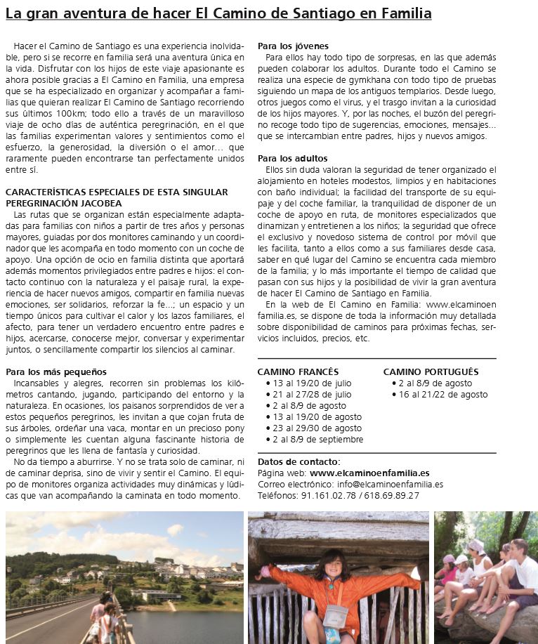 Cada vez son más las publicaciones que integran menciones o artículos relacionados con nuestra oferta de hacer El Camino de Santiago En Familia, aquí puedes acceder a ellas.